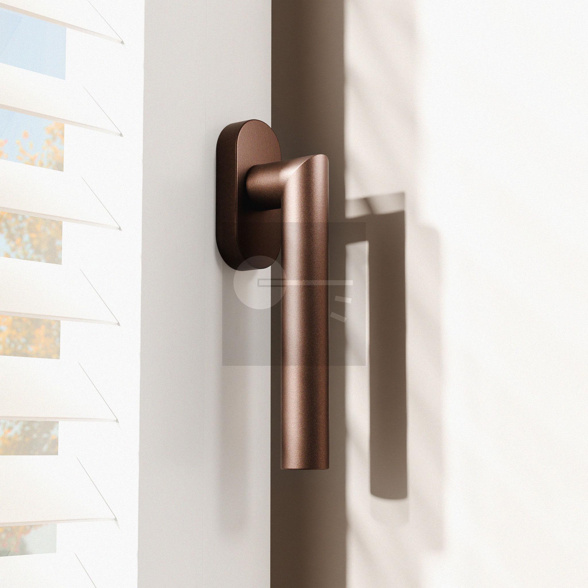 Bronze blend Toi raamkruk L-haaks model 19 mm gatdeel links/ rechts korte nek. Bruikbaar als balkonkruk of bij rolluiken.