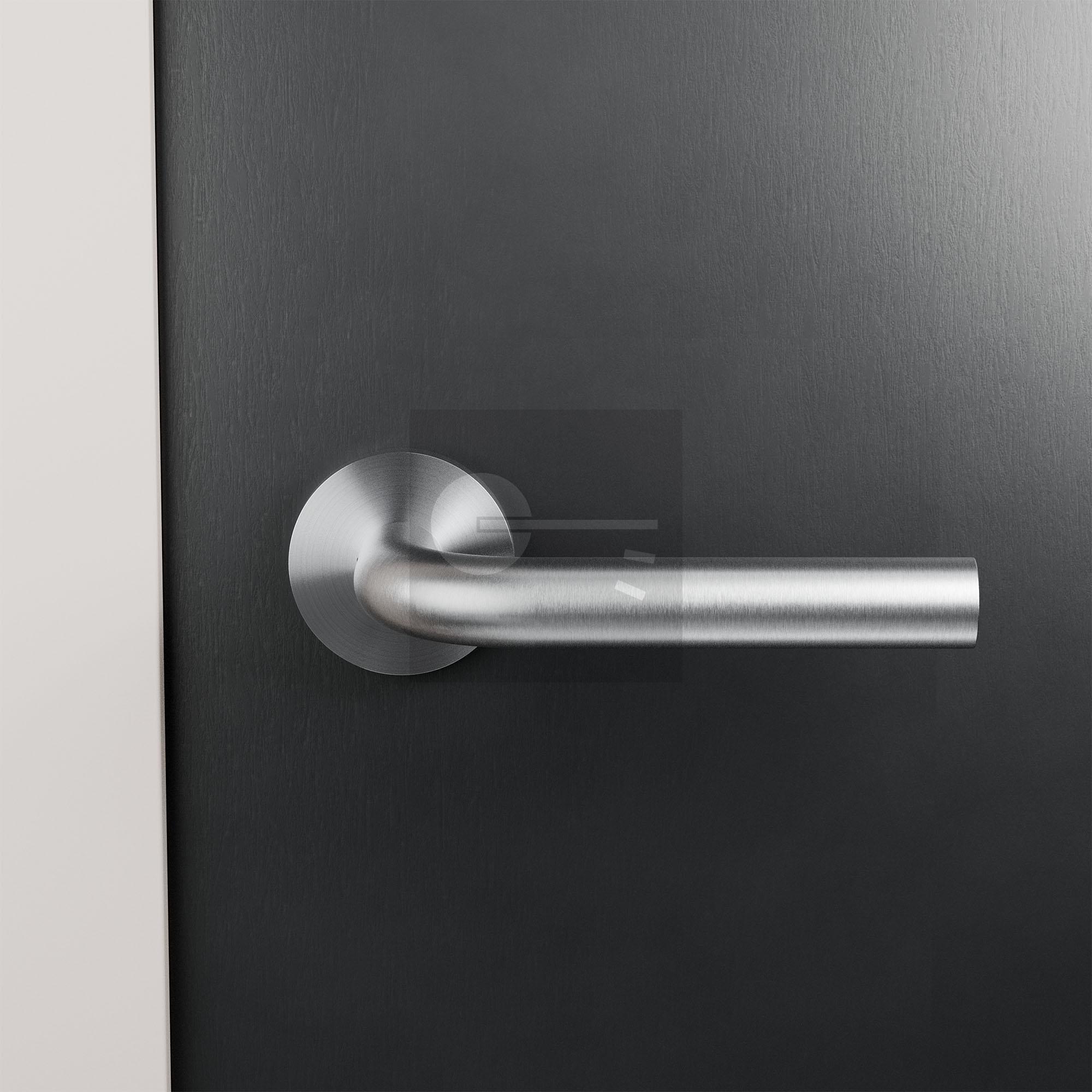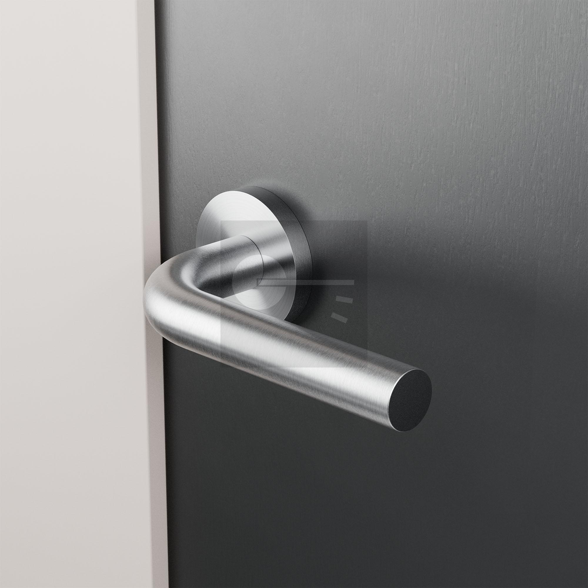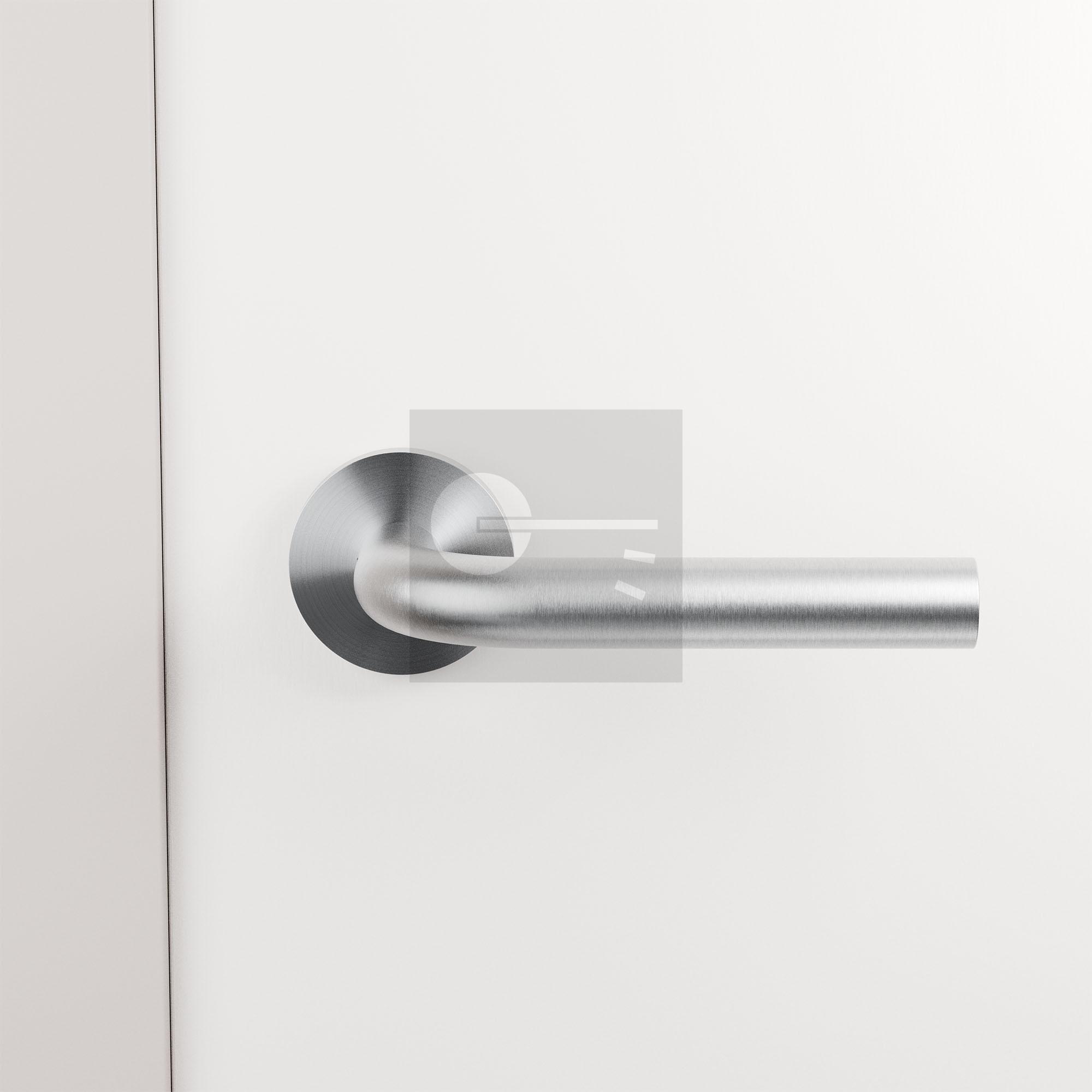 RVS deurkruk Aka op ronde rozet, 50x8 mm.