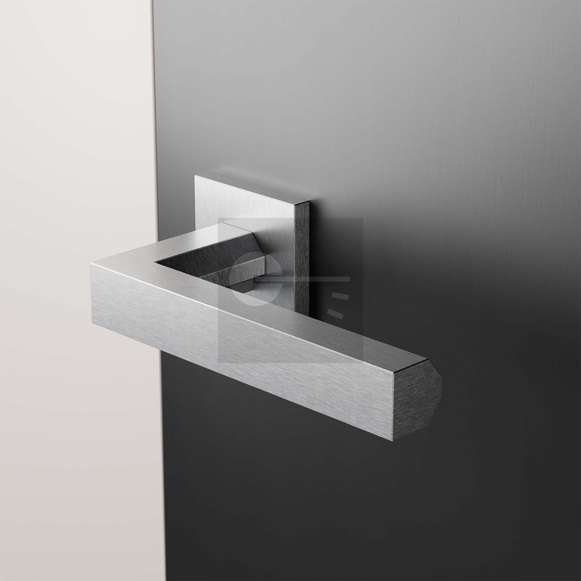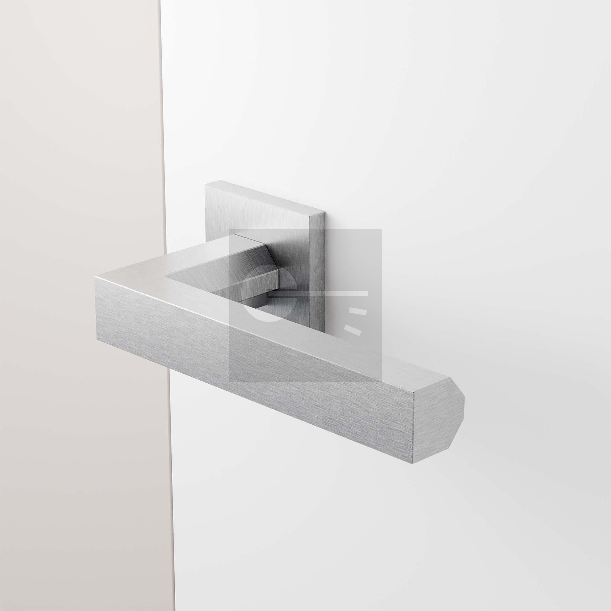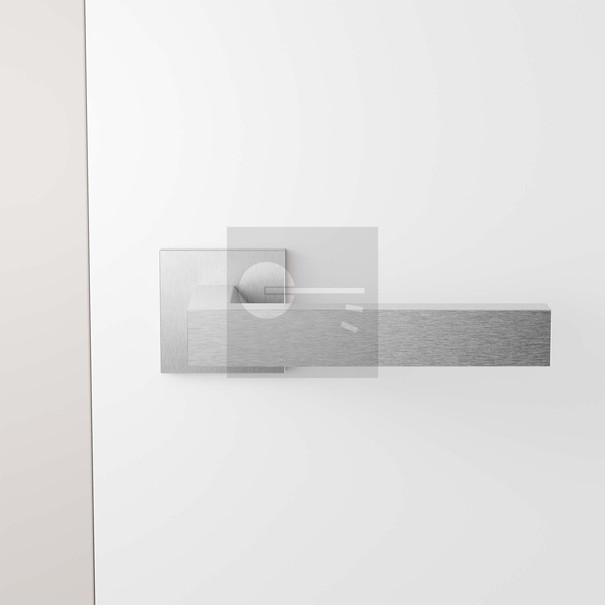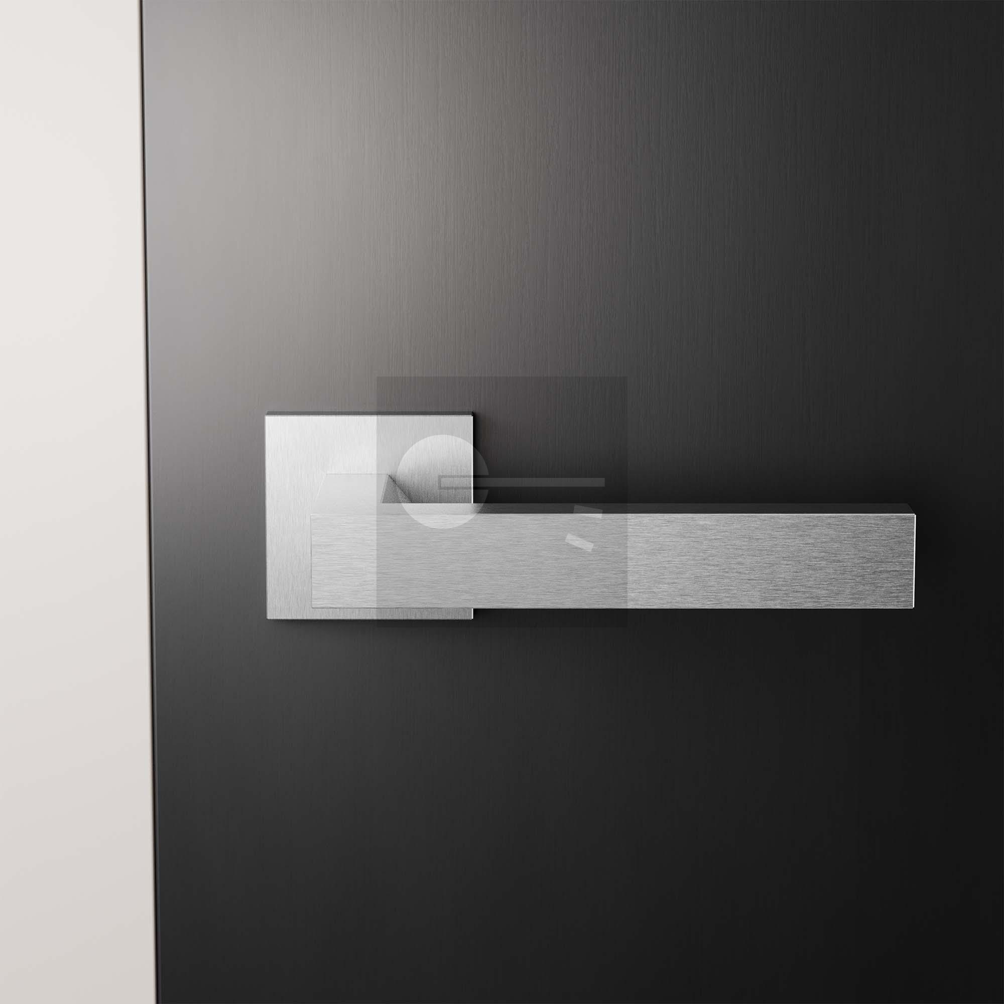 GPF1304.09-02 Tapu deurkruk op vierkante rozet RVS, 50x8mm met 2x GPF0901.02 sleutelrozet 50x50x8mm RVS geborsteld