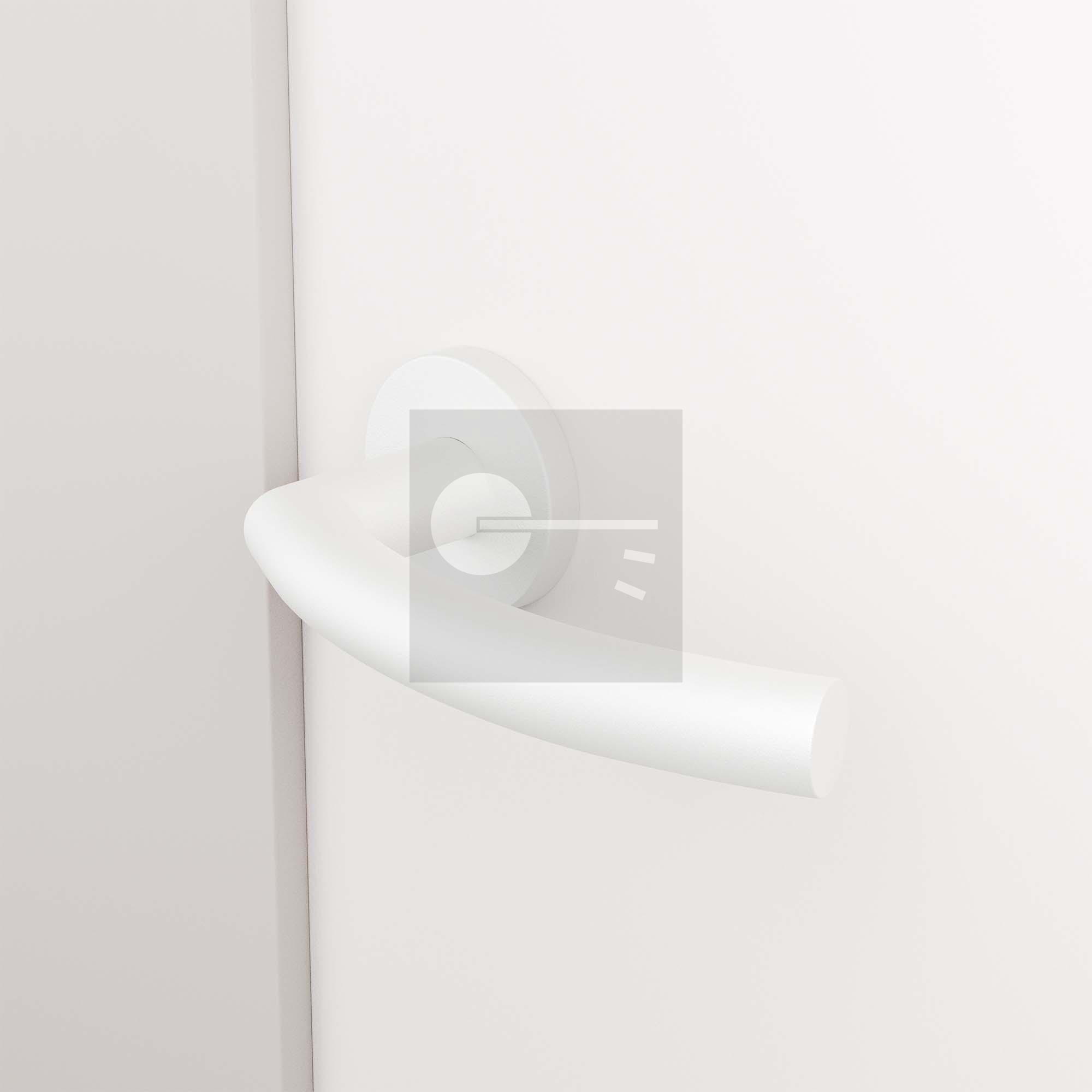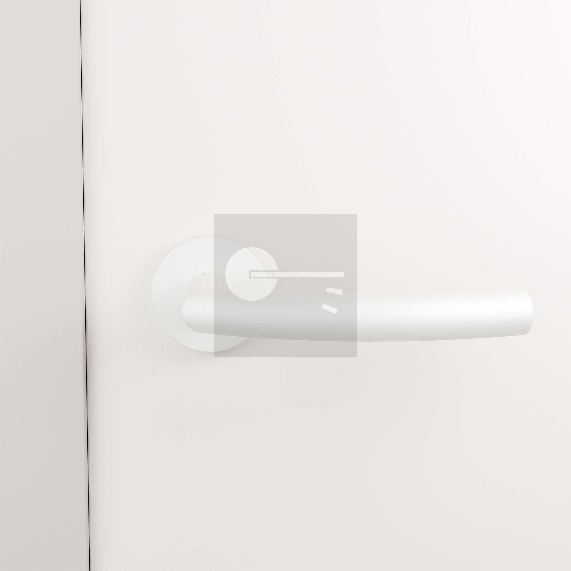 Witte deurkruk L/R Tonga op ronde rozet, 50x8 mm.