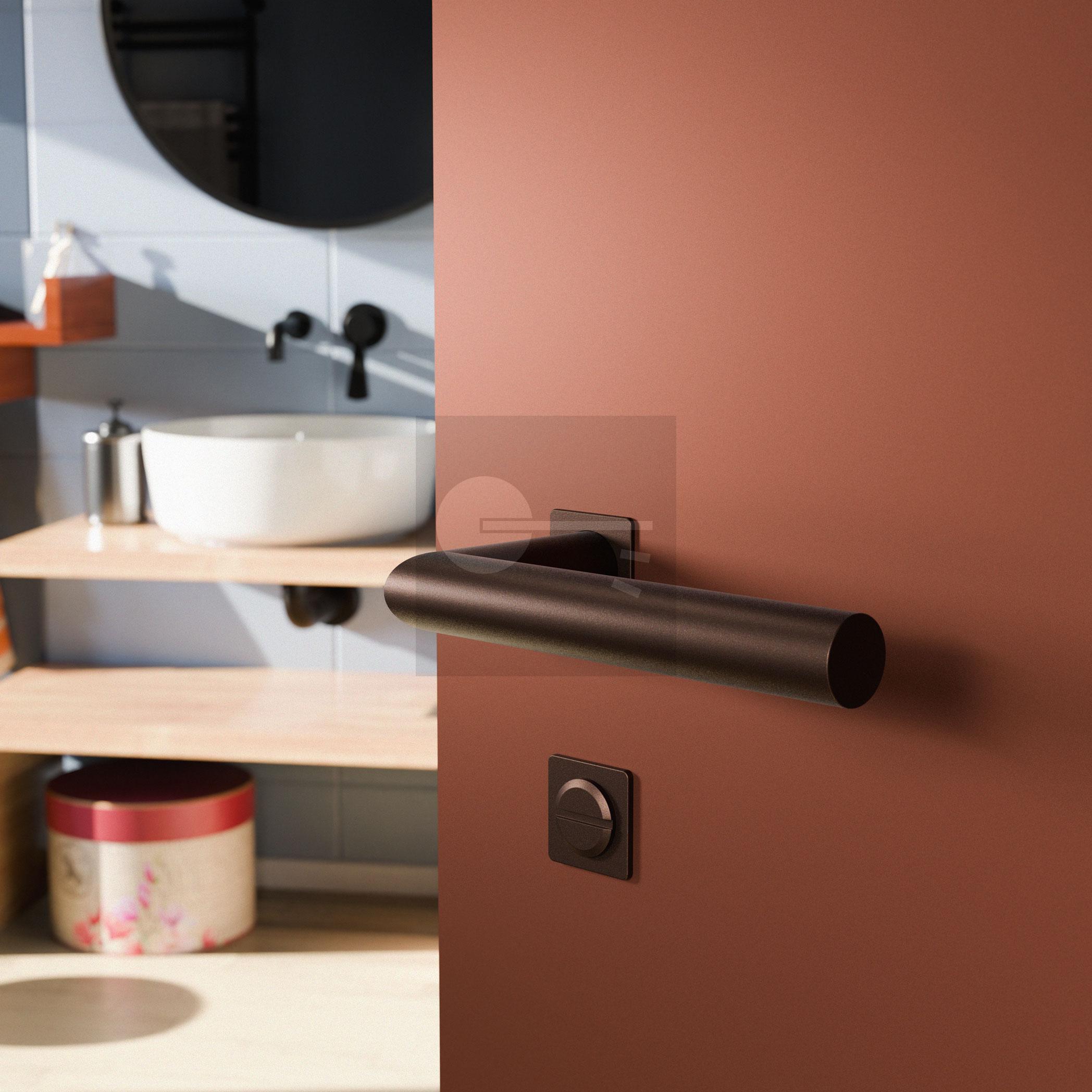 Privacy en stijl gaan perfect samen met dit kwalitatieve toiletgarnituur in de finish Bronze blend. De vierkante rozet heeft een afmeting van 28x28x1,5mm. De toiletstift heeft een dikte van 8 mm en een normale knop. De bevestiging van de rozet is weggewerkt achter de cover.