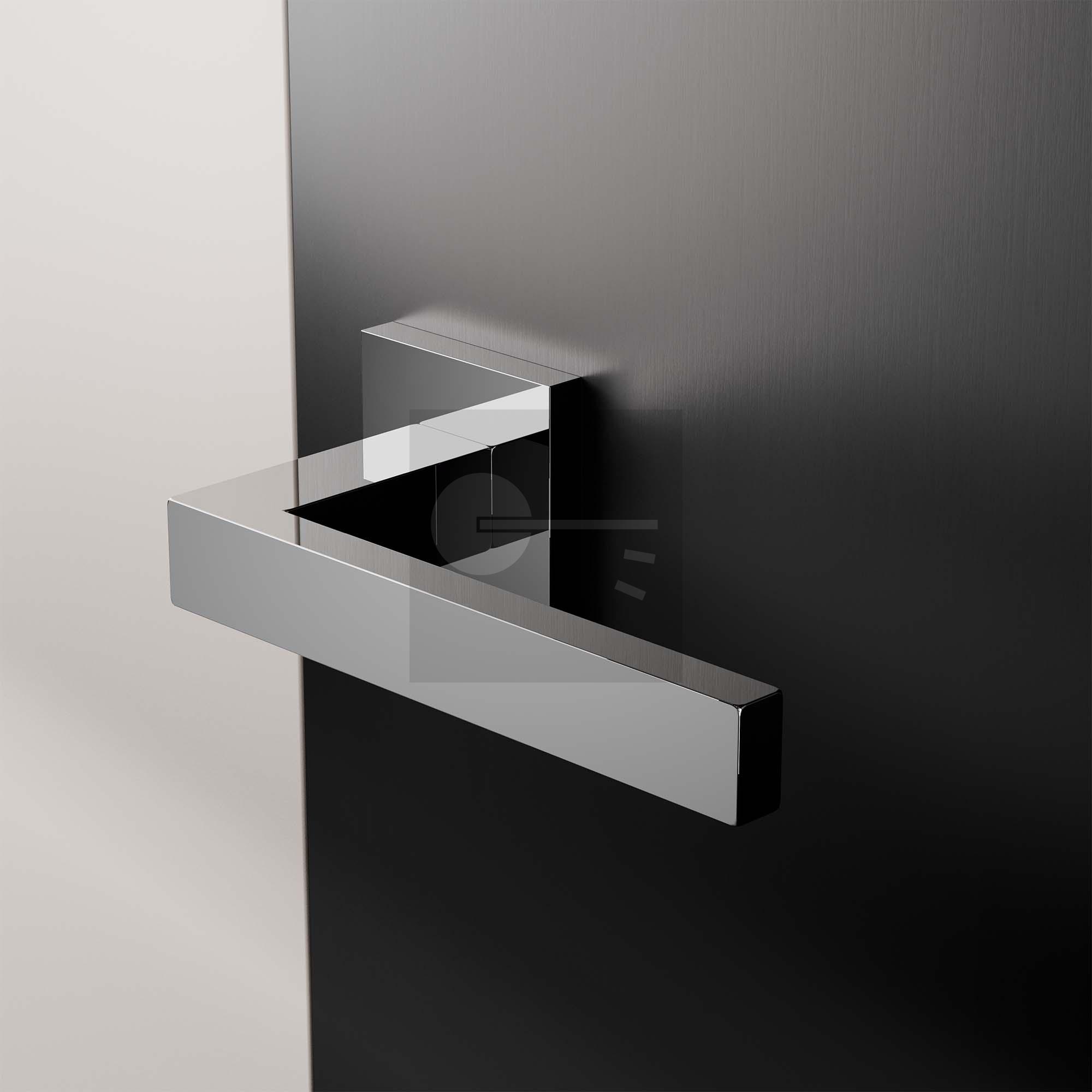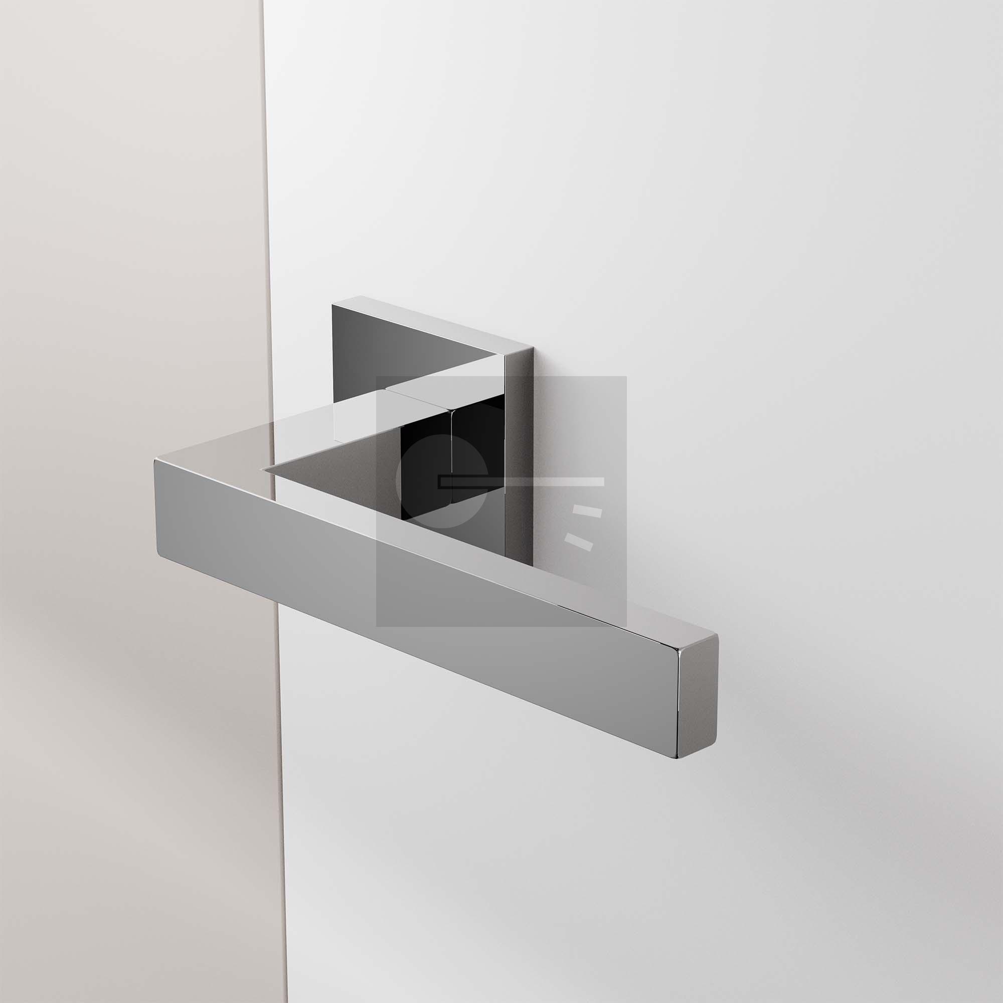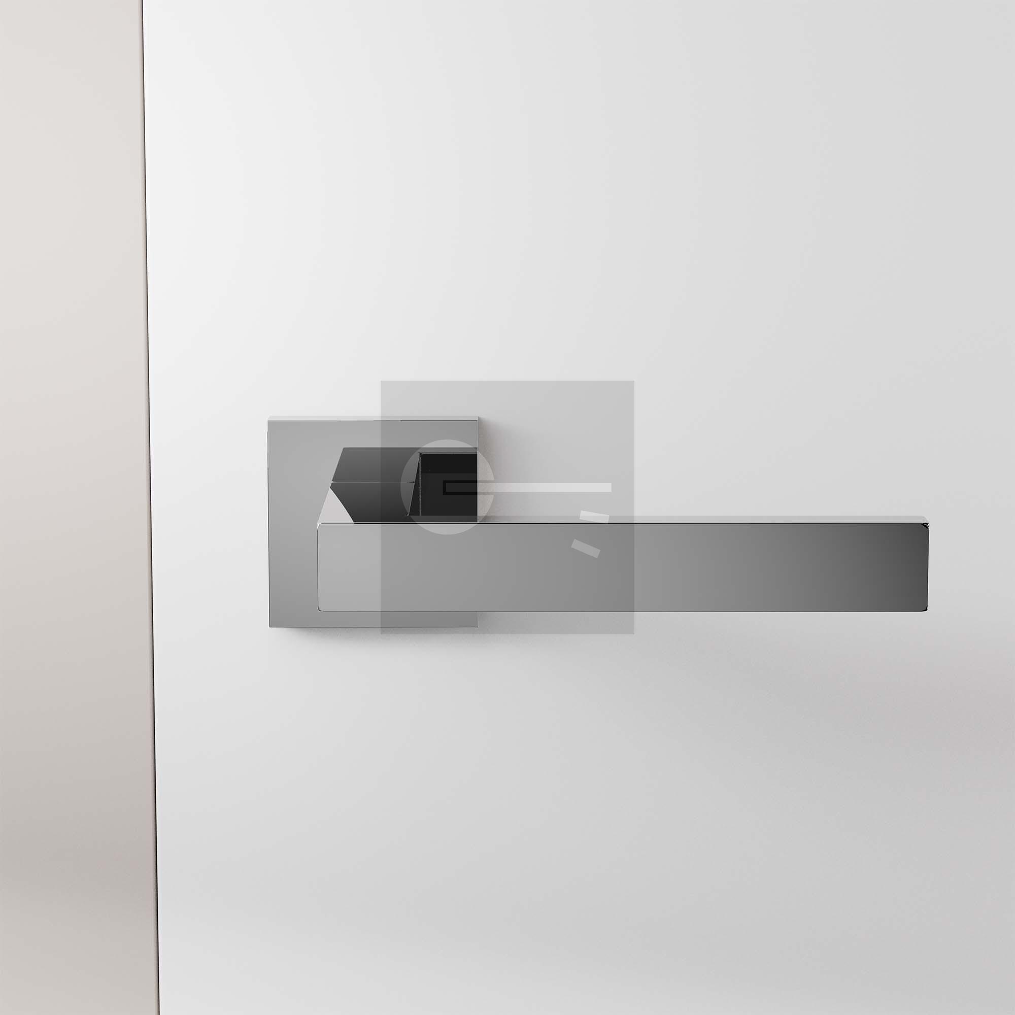 RVS gepolijst deurkruk Zika op vierkante rozet rechtswijzend, 50x50x8 mm.