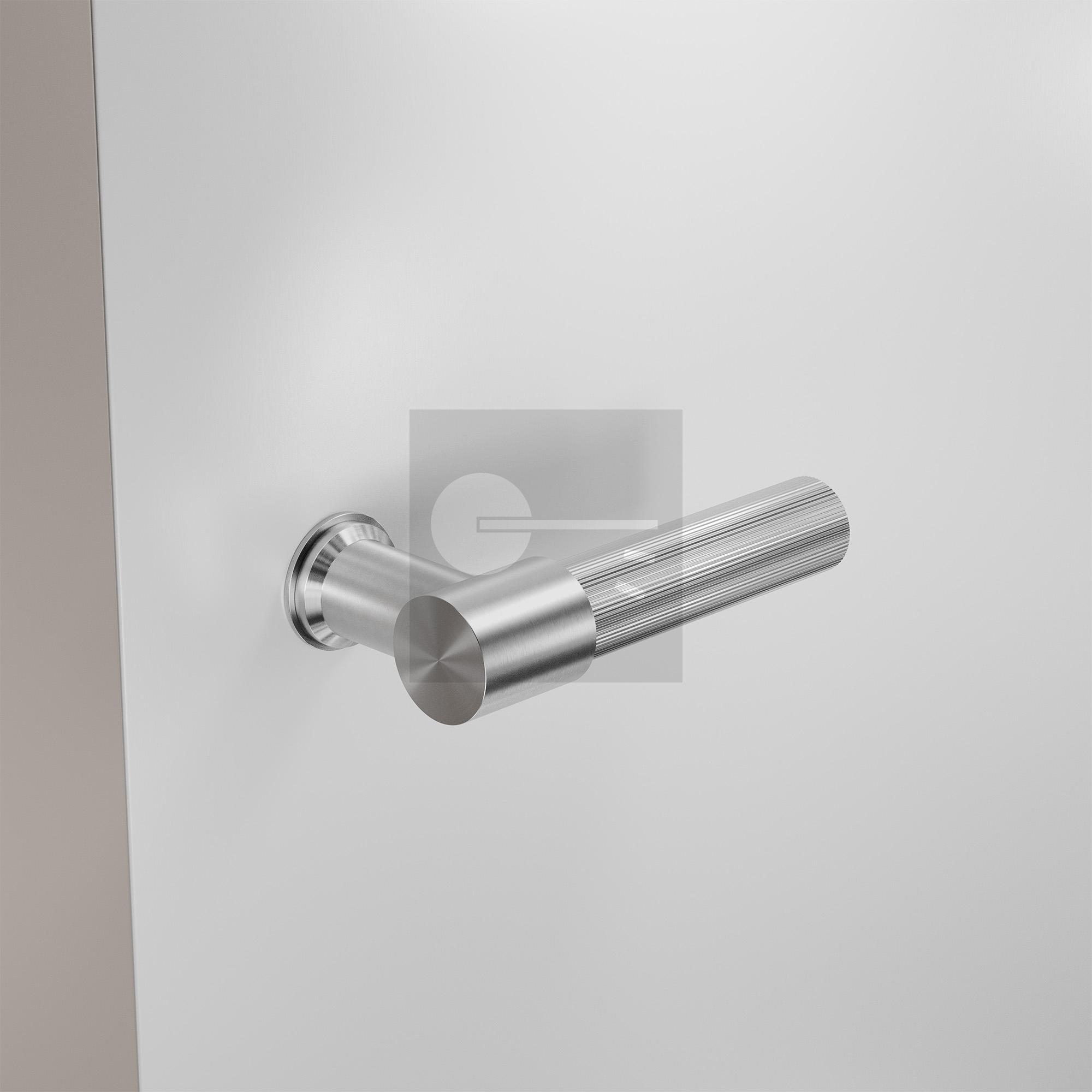 GPF3044.09R RVS Geborsteld Hipi Deux+ Fluted Kort Deurkruk Gatdeel Rechtswijzend met GPF1100.00L/R rozet 50x8mm RVS geborsteld links-/rechtsdraaiend
