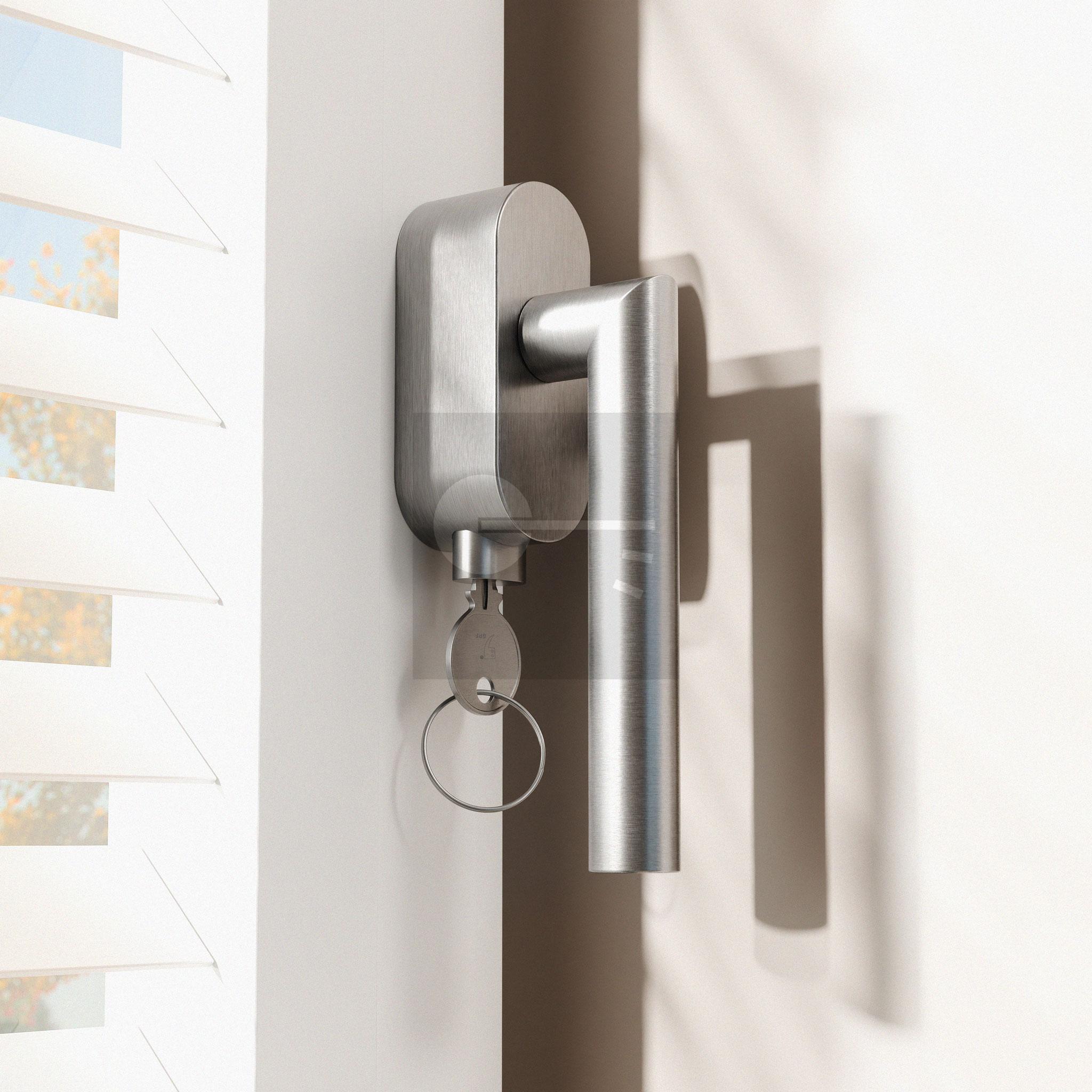 RVS matgeborsteld draaikiepmechanisme afsluitbaar ovaal 83x34x31 mm SKG*** met stift binnenzijde 40 mm
