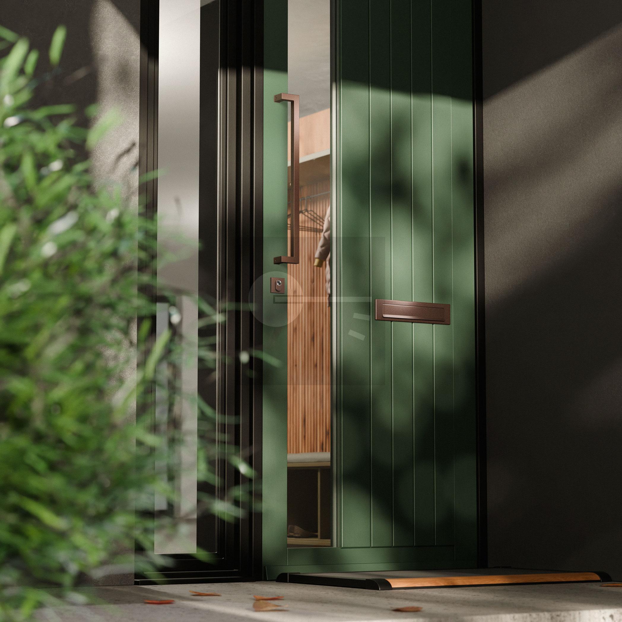 De bronzen kleur van de finish bronze blend wordt middels een poedercoating aangebracht op het basismateriaal roestvast staal. De metallic finish geeft een stijlvolle uitstraling aan het deurbeslag.
