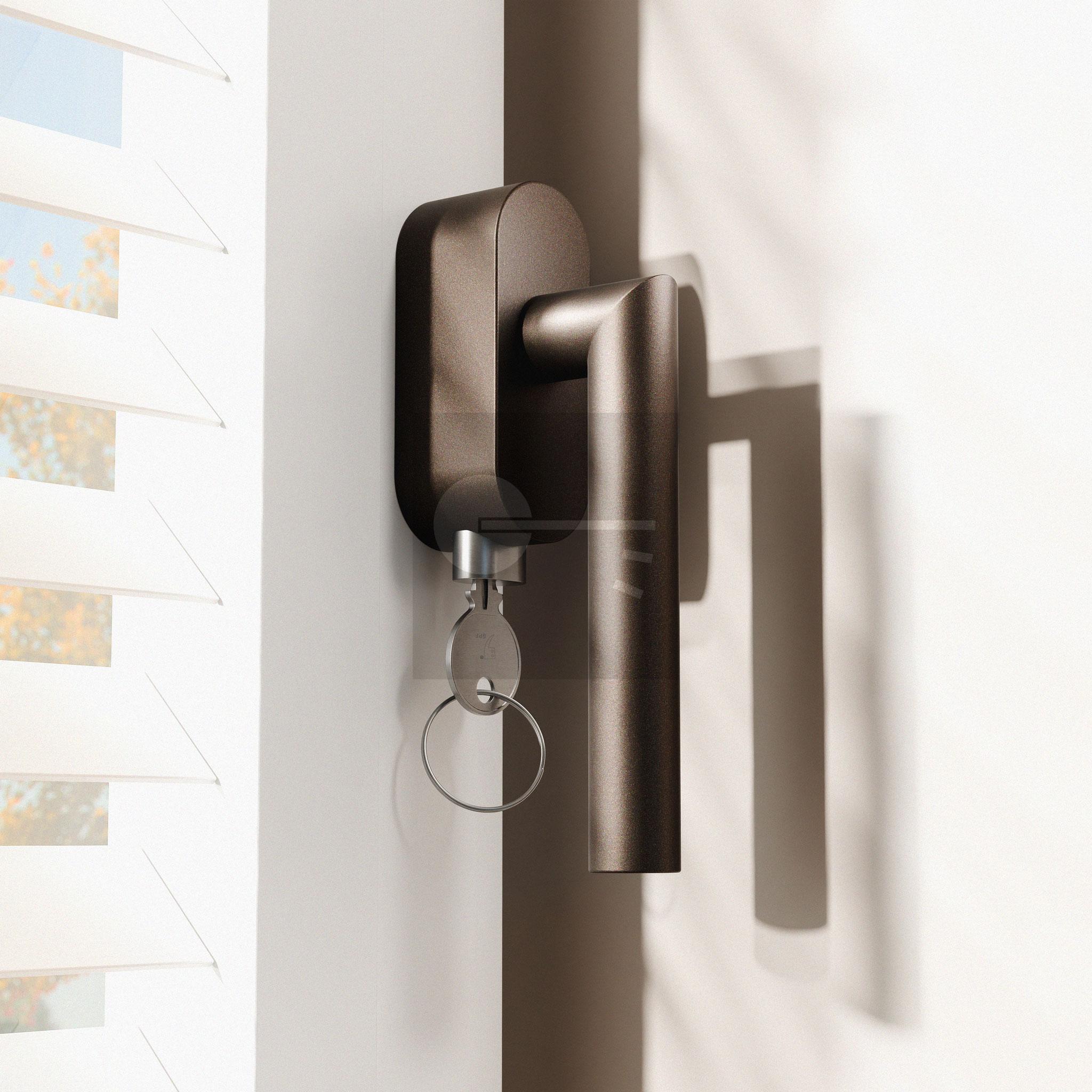 Dark blend draaikiepmechanisme afsluitbaar ovaal 83x34x31 mm SKG*** met stift binnenzijde 32 mm.