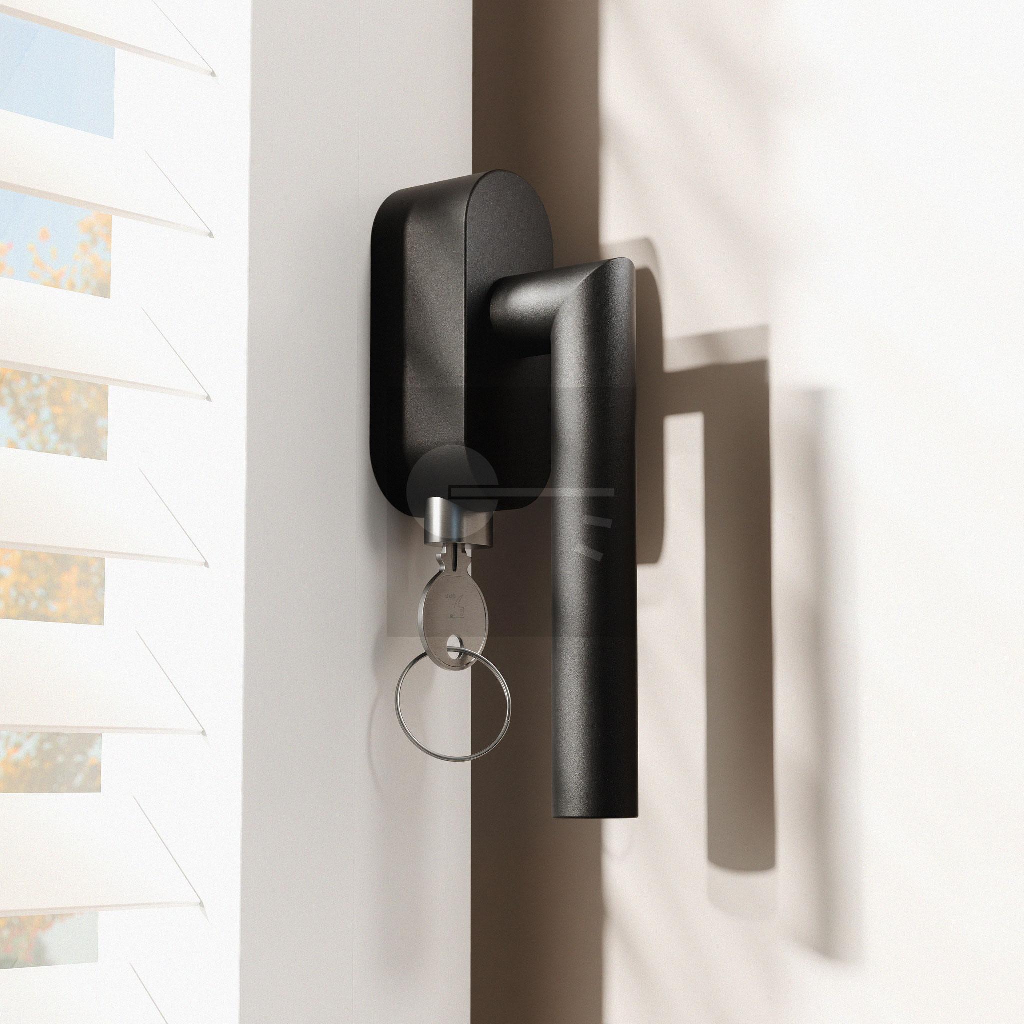 Zwart draaikiepmechanisme afsluitbaar ovaal 83x34x31 mm SKG*** met stift binnenzijde 65 mm